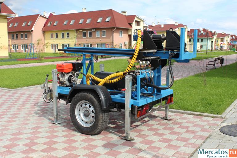 Буровая гидравлическая установка на прицепе КМЗ (колеса и ступицы УАЗ). Буровая установка предназначена для бурения вертикальных скважин в мягких и средних грунтах с прослойками твердых пород.Покупая установку у нас, Вы получаете бесплатное обучение и консультации по вопросам бурения.