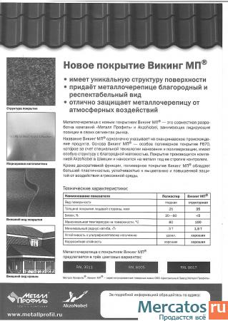 Представляем Вашему вниманию металлочерепицу с новым покрытием Викинг МП®. Обладая превосходными защитными свойствами, покрытие Викинг МП® имеет уникальную структуру поверхности. Она придает металлочерепице респектабельную матовость, а Вашему дому - солидный вид. ПРЕИМУЩЕСТВА НОВОГО ПОКРЫТИЯ ВИКИНГ МП® Имеет уникальную структуру поверхности Придает металлочерепице благородный и респектабельный вид Отлично защищает металлочерепицу от атмосферных воздействий Металлочерепица с новым покрытием Викинг МП® - это совместная разработка компаний "Металл Профиль" и AkzoNobel, занимающих лидирующие позиции в своих сегментах рынка. Название Викинг МП® однозначно указывает на скандинавское происхождение продукта. Основа Викинг МП®- особое полимерное покрытие F670, которое за счет специальной технологии нанесения и полимеризаци, имеет особую структуру с благородной матовостью. Покрытие производится компанией AkzoNobel в Швеции и наносится на металл под ее строгим контролем. Кроме декоративной функции, полимерное покрытие Викинг МП® обладает большей пластичностью, устойчивостью к выцветанию и повышенной защитой от воздействия агрессивной среды.