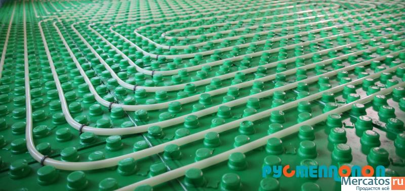 Специально разработанные плиты из пенополистирола, служат для организации сплошного слоя теплоизоляционных влагостойких оснований системы "теплый пол". Представляют собой компактные изделия из плотного пенопласта, отштампованные заводским способом и покрытые пленкой. Предназначены для экранирования теплового потока, излучаемого бетонной стяжкой системы отопления полом. Служат основанием для фиксации труб якорной скобой KL 10016. Теплоизоляционные плиты (маты, подложка) являются основой систем водяных теплых полов, от них зависит качество стяжки, тепловая мощность пола и даже звукоизоляция перекрытий. Сцепление плит FT 40208 проходит легко и быстро, так как они снабжены боковыми самоцентрирующимися замками, которые позволяют сформировать сплошной герметичный слой теплоизоляции. На краях у плиты есть линейка для удобства подгонки плит под конфигурацию помещения. Использование теплоизоляционных плит FT 40208 позволяет существенно сократить сроки монтажа теплых полов, обезопасить греющую трубу во время заливки цементно-песчаной стяжки и сэкономить 18% на эксплуатационных расходах, что особенно чувствительно, когда теплый пол является основным видом отопления.